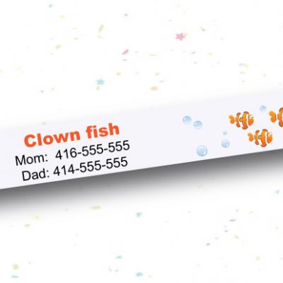 Choose from our selection of colourful designs. Just add your child’s name, emergency contact information or any other important health concerns that you would like to flag. All that vital information is printed on your custom durable wristband.